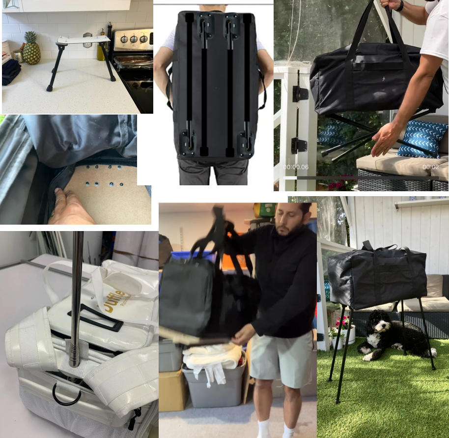 Duffel8™ is a premium, patent-pending duffel bag–backpack hybrid designed for athletes, travelers, and everyday adventurers who demand more from their gear. At its core is our breakthrough quick-release leg system — engineered to solve the age-old problem of having to set your bag on dirty, wet, or uneven ground. With the legs deployed, your bag is elevated, keeping it clean, accessible, and always within easy reach.
